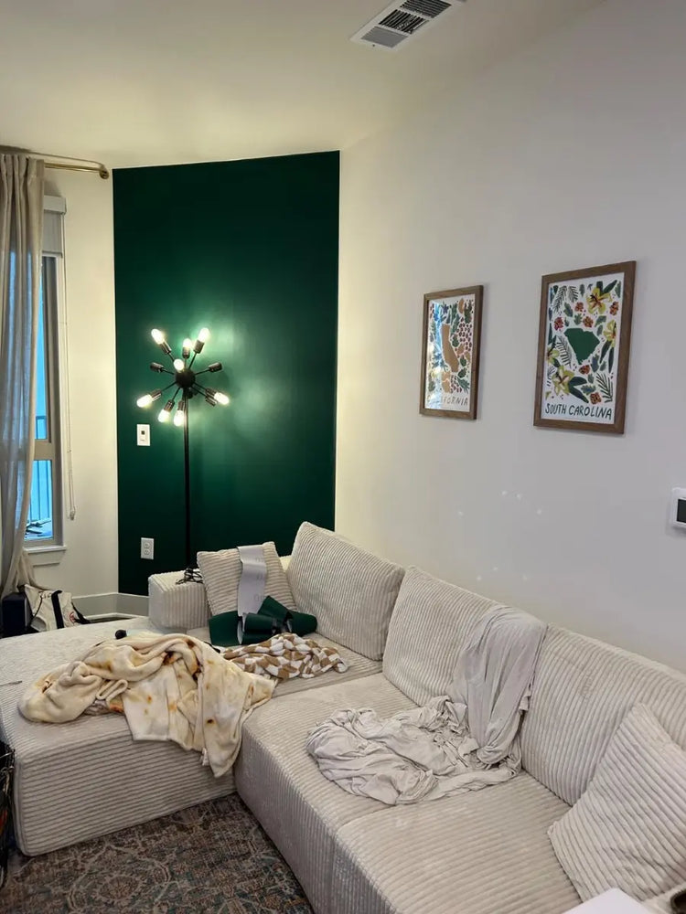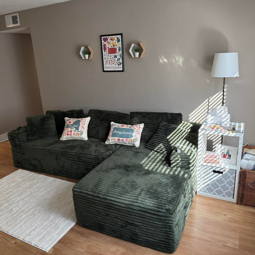 “The green color is even better in person, and the couch is deep enough to nap on!”