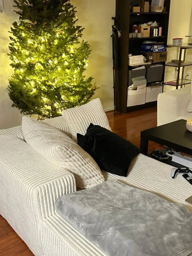 “So cozy during the holidays, especially next to the tree. Love the texture of the fabric!”