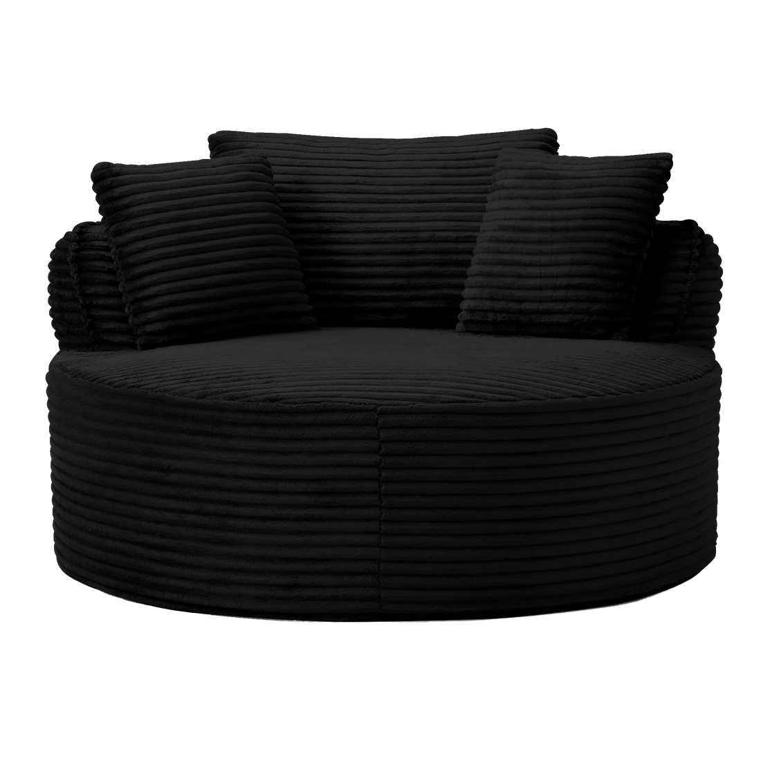 It features a fully rounded lounge design that removes hard corners and rigid seating positions. The shape allows for more relaxed postures and shared lounging, creating a softer, more inviting seating experience.