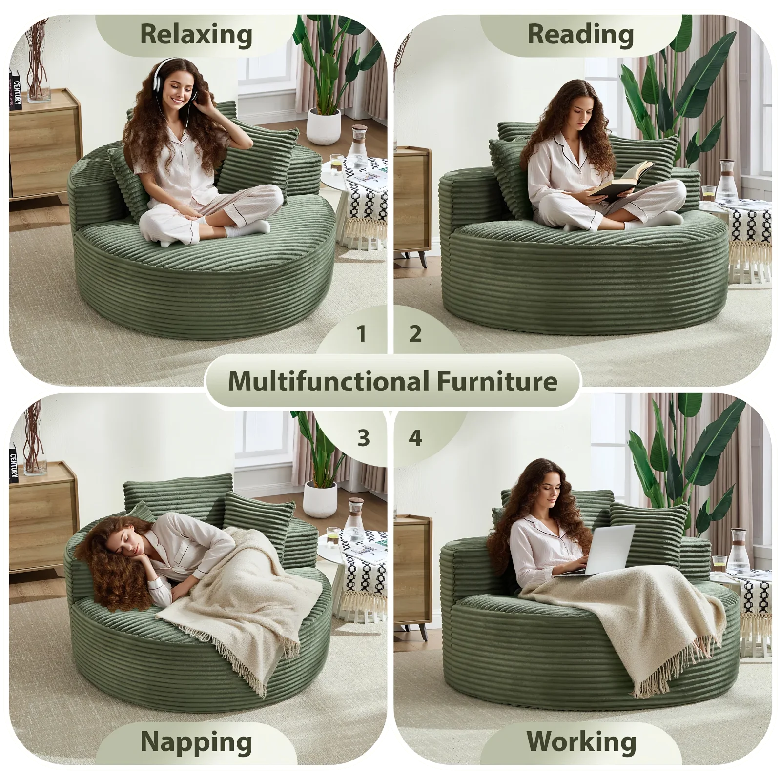 Wrapped in plush ribbed corduroy, the sofa delivers a cloud-like softness the moment you sit down. The breathable fabric stays warm and cozy without overheating, making it comfortable year-round. Its rich texture adds depth and warmth to the room, turning the piece into both a statement and a place you naturally gravitate toward.